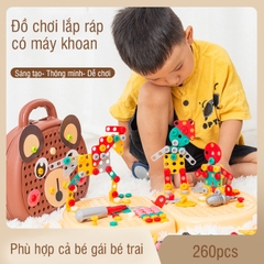 Đồ chơi lắp ráp ốc vít, hộp dụng cụ kĩ sư di động gồm máy khoan điện, búa, cưa, tô vít trẻ em là Bộ đồ chơi phát triển trí thông minh đa năng cho bé.